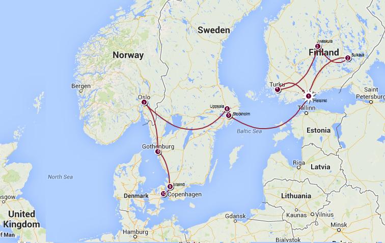 Time-travels in Scandinavia is a collection of photos, notes, sketches and articles which I gathered during my summer studies of Nordic architecture and design through the program hosted by the University of Washington. Together with our professors P. Cohan and J. Dee we travelled in Finland, Sweden, Norway, and Denmark exploring projects by great Scandinavian architects of XX century and today’s designers, while paying particular attention to the cultural and geographic aspects of Scandinavia. Our journey was not guided by a historic timeline and oftentimes we moved in time from a medieval old town into a modern planned suburb, while stopping at a traditional Nordic village and deciphering old runes at viking burial sites. Frequently we encountered places and buildings, where several “times” met together and architecture demonstrated profound responsiveness to the local context. This deepened our understanding of contemporary urban design and shaped a way of thinking that can be applied in our own endeavors.