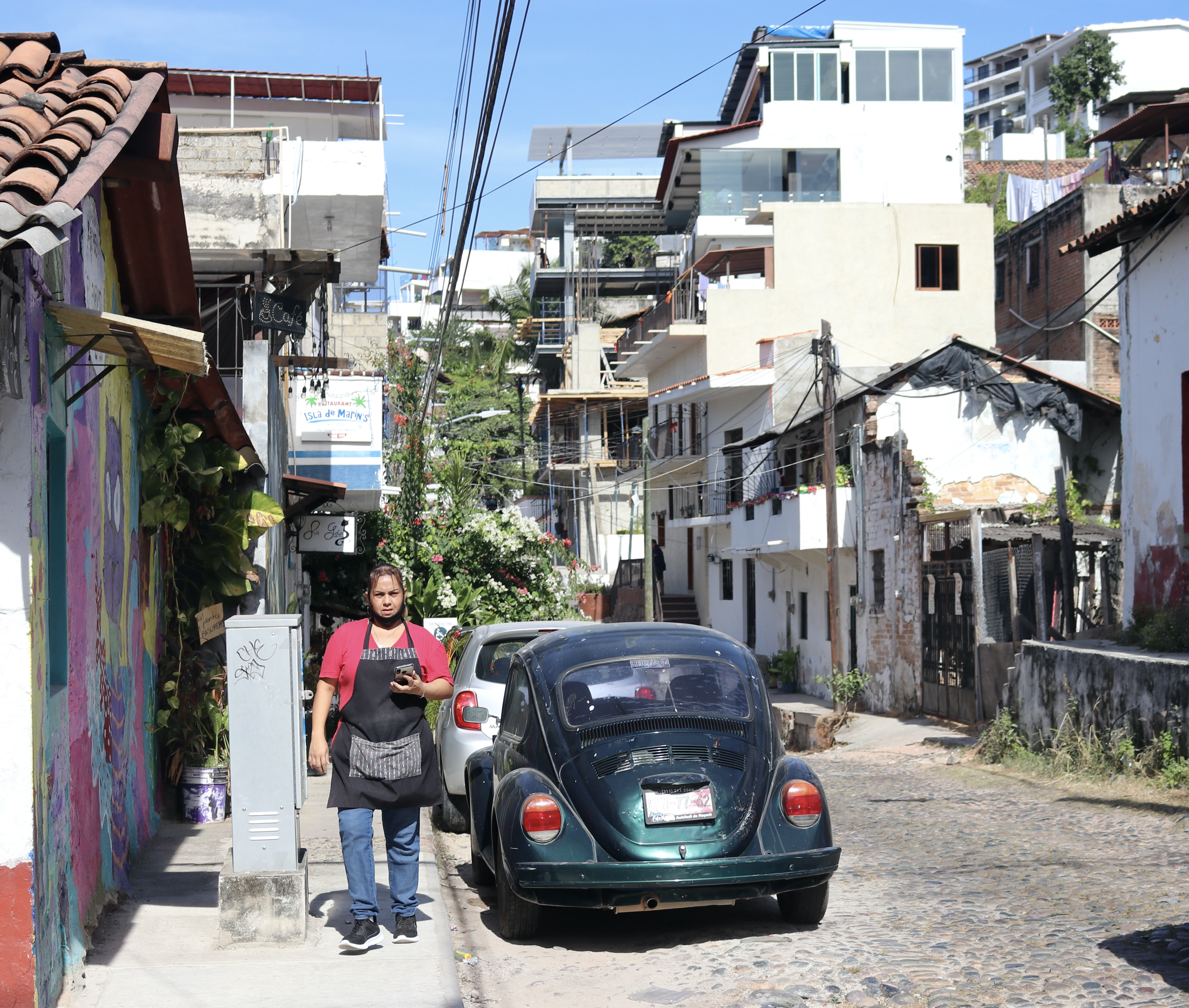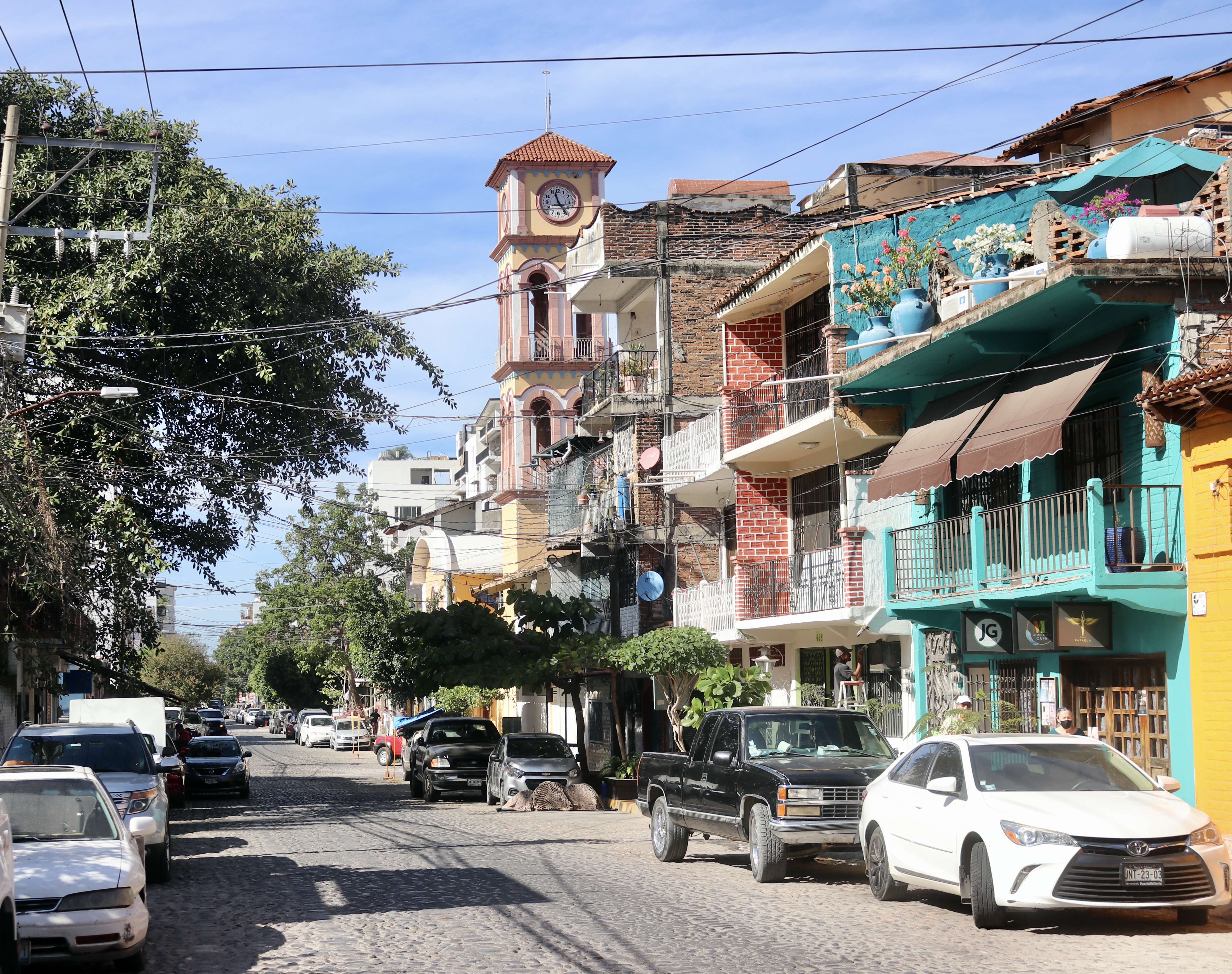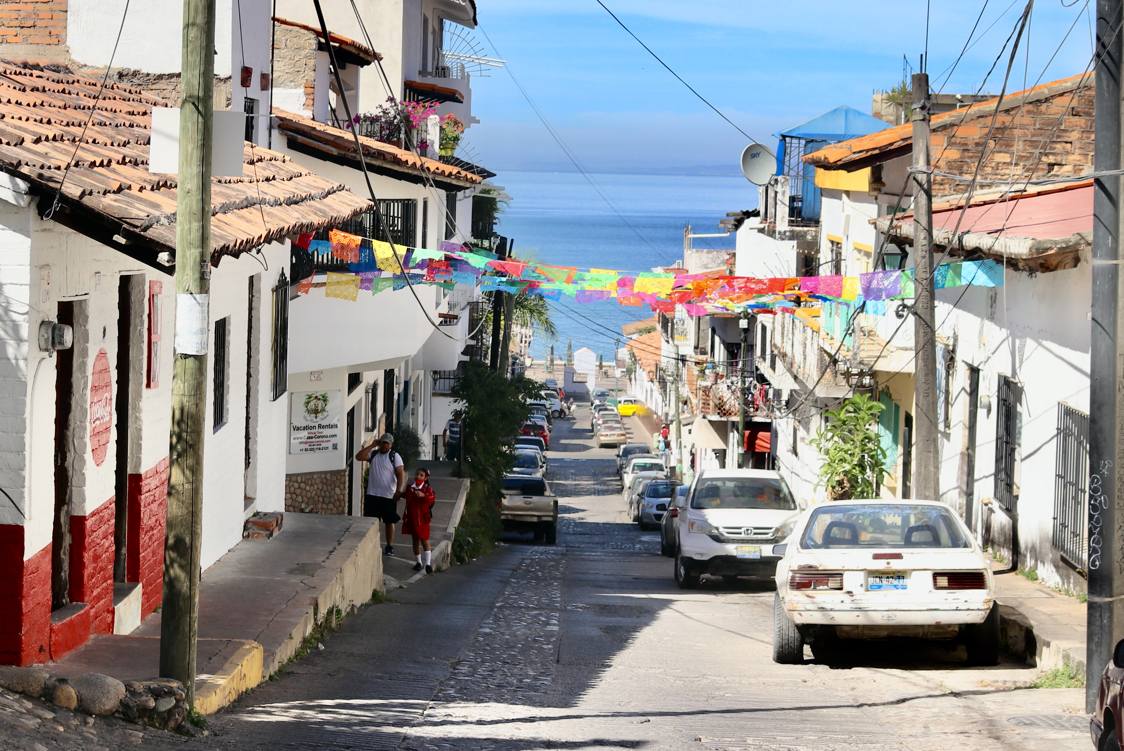 One may assume, that since this city is a popular resort, it might be lacking authenticity and history while offering a wealth of touristic glamour. Well, it might be the case, if one stays by the beach and rejoices a glass of piña colada all day long. As we wandered in the old part of town next morning, we discovered many traditional features around us. The neighborhood has grown organically and contains examples of architecture that is a blend of Mexican rustic style with some colonial elements. Bright facade colors, red clay-tile roofs, balconies of varied sizes – we could often notice the patina of time, but oftentimes older residential houses looked too distressed. Yet, the streets were always filled with life, decorations, and sounds of the ocean waves crashing at the shore close by – our hospitable little town shared its simple beauty and joy with every visitor. The city wasn’t created as a resort from scratch. Having evolved as a small fishing village during the 18th century, it turned into a port-town and was ‘officially founded’ in 1851, on December 12th (the day dedicated to the virgin of Guadalupe). It supported local silver mining operations and attracted locals as a recreational area before the government became interested in developing the town as an international resort in the late 1960s. In spite of the sizeable modern development (i.e. condos) by the seaside and at the city center, Vallarta’s colorful old town has fortunately retained its historic charm.