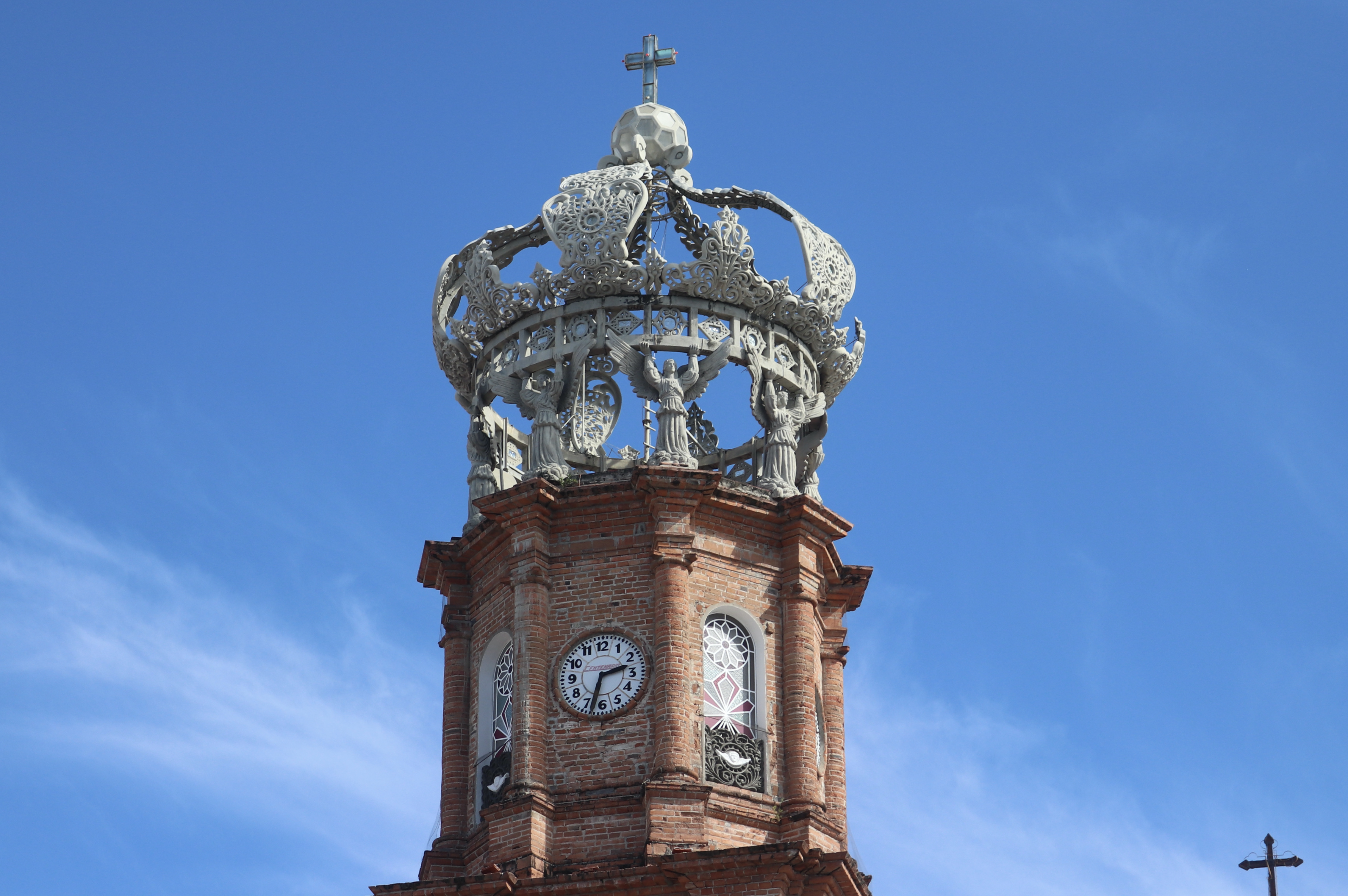 Built in the 1930s, the church of Our Lady of Guadalupe is a neoclassical structure topped by a Baroque-style crown. Our Lady of Guadalupe (Virgin Mary) is the patron saint of Mexico and is a collective representation of Mexican society. According to a legend, on the 12th of December in 1531, our Lady of Guadalupe appeared in front of a Mexican man named Juan Diego. The spread of the news about this event essentially established Catholicism in Mexico, providing a new era of religious belief that was layered onto Aztec polytheistic culture that had prevailed until then.